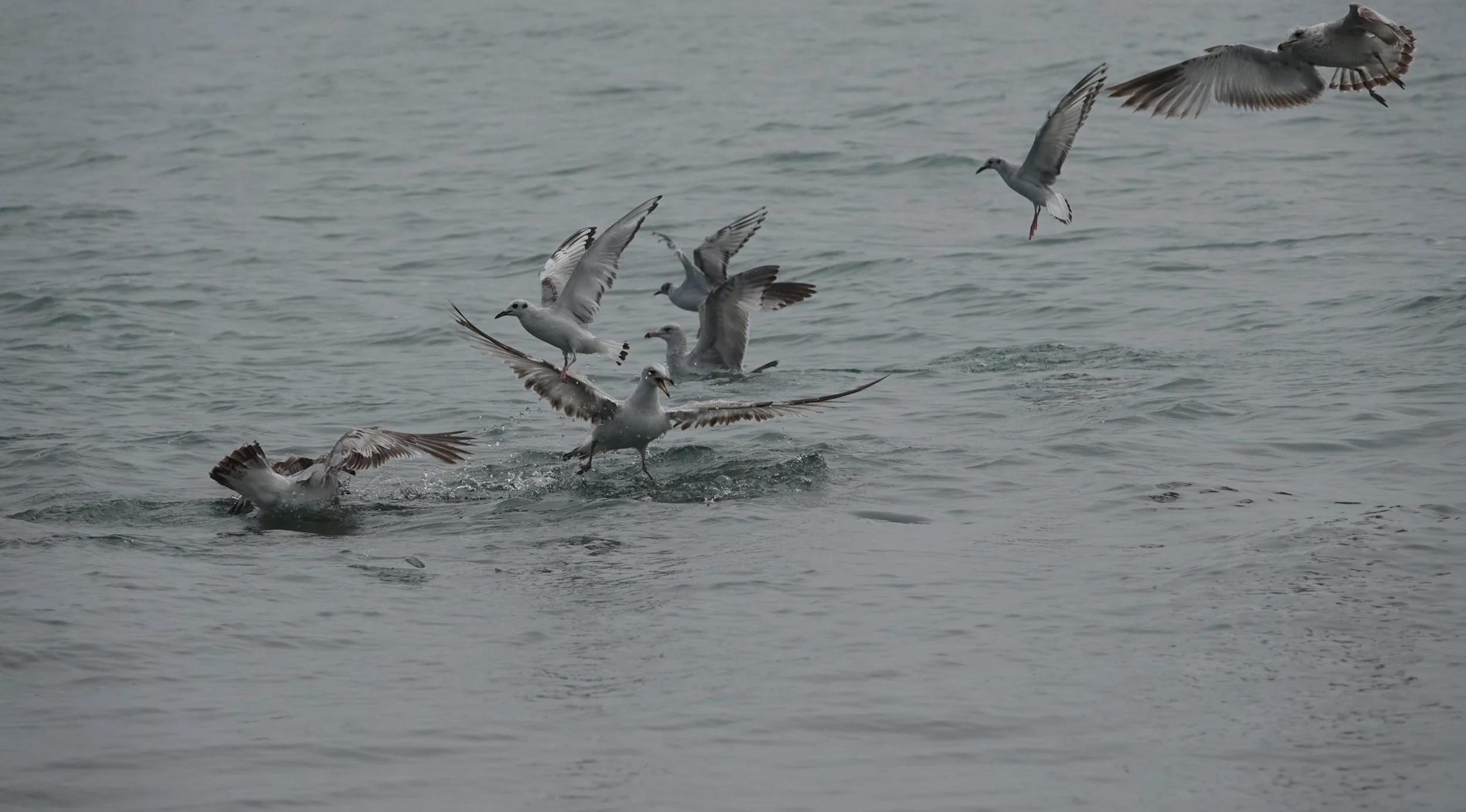 Gulls squabbling over fish (you can see one to the bottom right of the far right gull)